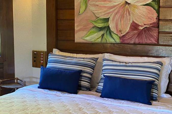 O Bangalô Prainha possui dois quartos (um quarto ao lado do outro) e é perfeito para quem viaja em família ou grupo de amigos. Possui cama Queen size ou solteiro, varanda e vista para o jardim e área verde. Entre as comodidades ainda estão: ar condicionado, frigobar, TV, cofre e armários.